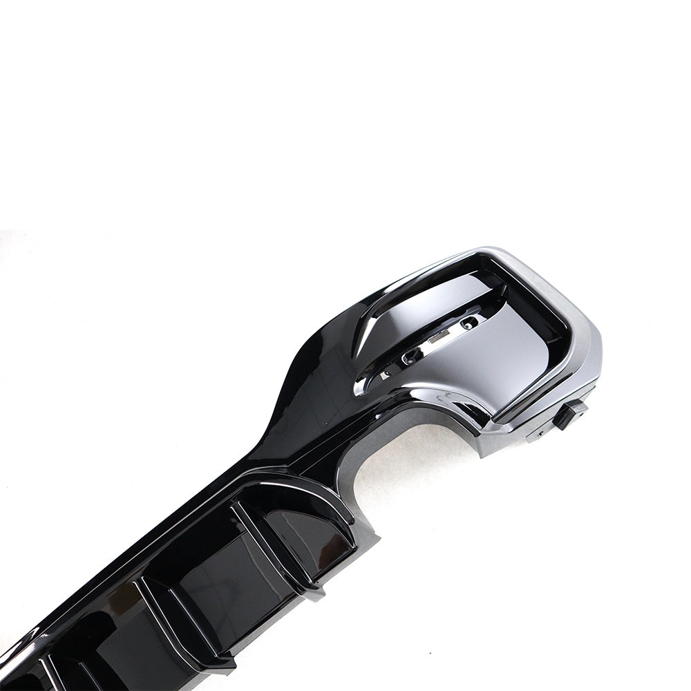 Enhance the rear-end aggression of your BMW 1 Series F20 LCI with this Gloss Black Rear Diffuser, designed for quad exhaust setups with two outlets on each side. This diffuser delivers a bold, motorsport-inspired appearance while fitting seamlessly with the factory M Sport rear bumper.